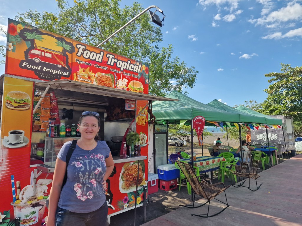 Die Anreise zum Manuel Antonio Nationalpark von Norden kommend ist wunderschön, weil man fast durchgehend an der Küste entlang fährt und tolle Ausblicke aufs Meer genießen kann. Der Pazifikstrand ist auch bei Einheimischen äußerst beliebt und entsprechend gut ist die Infrastruktur dort, du findest direkt neben der Straße unzählige Essensstände, an denen du dich während deiner Fahrt schnell stärken kannst.