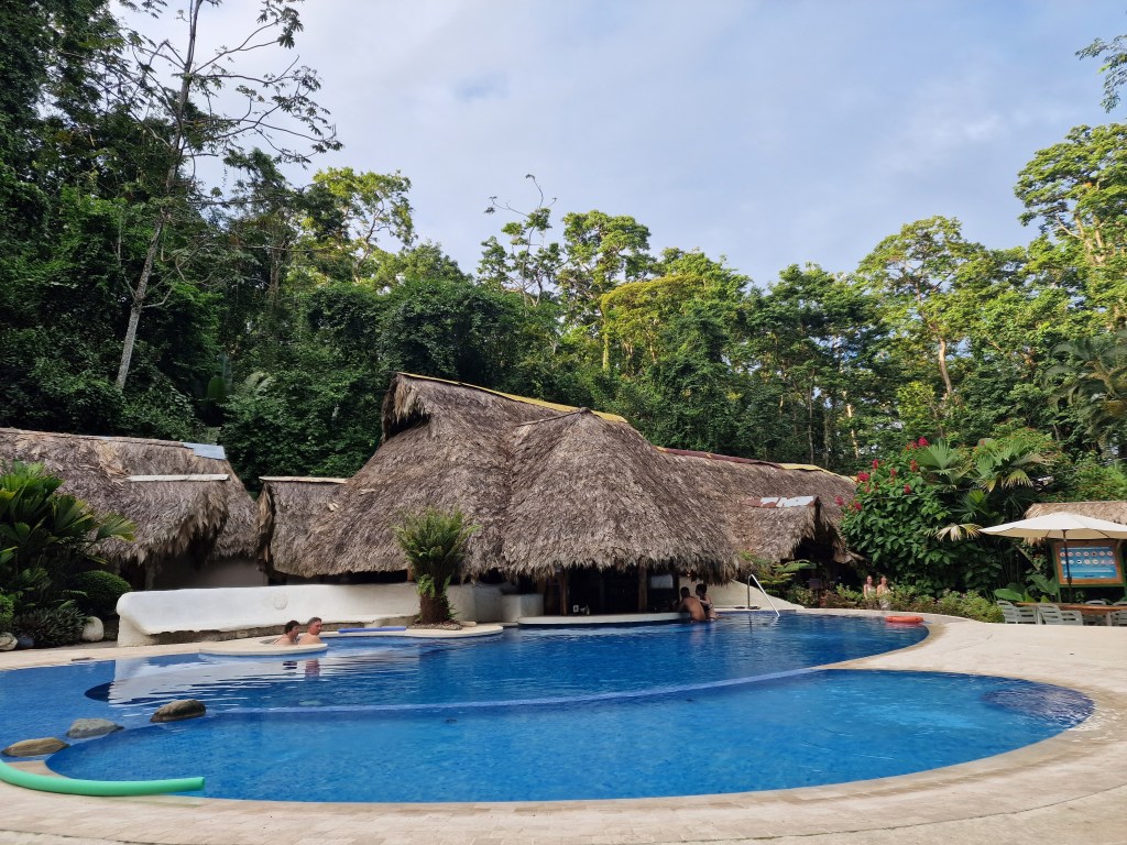 Apropos Hotel… wie gesagt, es gibt hier, wie überall in Costa Rica so ziemlich alles, von ganz einfach bis zum super Luxushotel. Wir haben auch selbst jede Kategorie durchprobiert und jedes Hotel auf seine Weise genossen, in Puerto Viejo haben wir aber mit dem Cariblue Beach und Jungle Resort echt einen Glücksgriff getätigt. Es war nicht nur toll angelegt mit Pool und fast direkt am Meer, nein, wir haben hier auch Faultiere direkt vom Pool aus beobachten können. Das gab natürlich gleich nochmal Bonuspunkte…