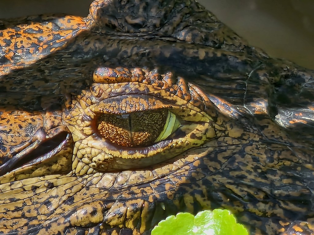 Abgesehen davon, dass Krokodile Fleißfresser sind, unterscheiden sie sich von den Kaimanen auch in ihrer Größe, Krokodile können bis zu 8 m lang werden. Außerdem haben sie ein langes spitzeres Maul, während das von Kaimanen runder ist und bei den Krokos sieht man auch bei geschlossenem Maul Ober- und Unterkieferzähne, bei den Kaimanen hingegen nur die des Oberkiefers.