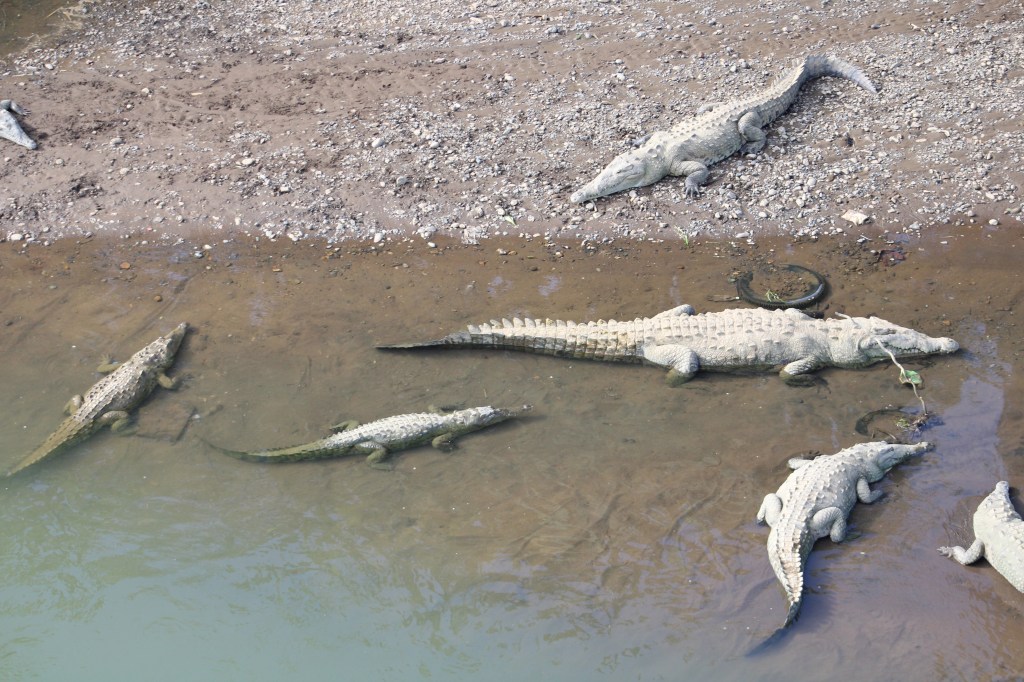 Im Tarcoles River tummeln sich hunderte Krokodile und einen Teil davon kannst du aus sicherer Entfernung von der Brücke aus sehen. Das Krokodil ist im Gegensatz zu dem in Costa Rica ebenfalls weit verbreiteten Kaiman ein Fleischfresser und kann schon mal wirklich gefährlich werden, daher macht es durchaus Sinn, sie mit ein bisschen Abstand zu betrachten.