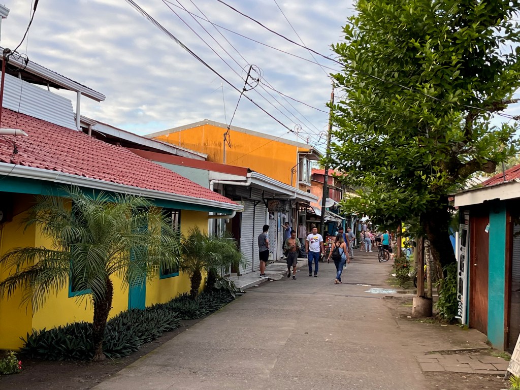 Der Ort Tortuguero selbst ist klein und beschaulich, an die 500 Leute leben dort. Im Wesentlichen besteht er nur aus einer Hauptstraße, an der du verschiedene Cafés, Restaurants und Unterkünfte findest, ebenso 2 Supermärkte und einige Souvenirläden. Einen Bankomaten gibt es in Tortuguero übrigens nicht, nimm daher genügend Bargeld mit. Du kannst zwar in den Lokalen meist mit Kreditkarte zahlen, manche Touren sind allerdings immer noch bar zu bezahlen.